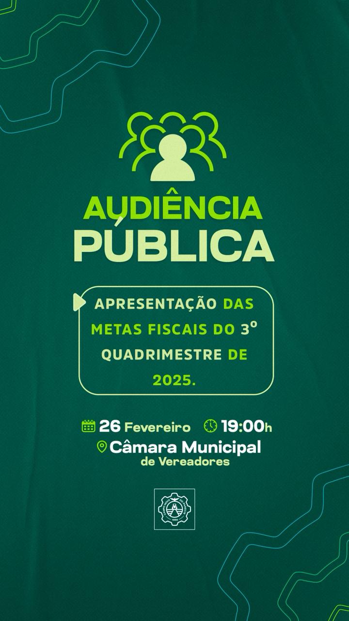A Prefeitura convida toda a população para participar da Audiência Pública de Apresentação das Metas Fiscais do 3º Quadrimestre de 2025.